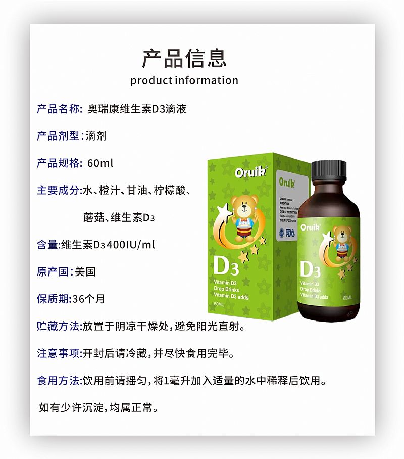 | 產(chǎn)品名稱 | 美國原裝進(jìn)口維生素D3滴液 |