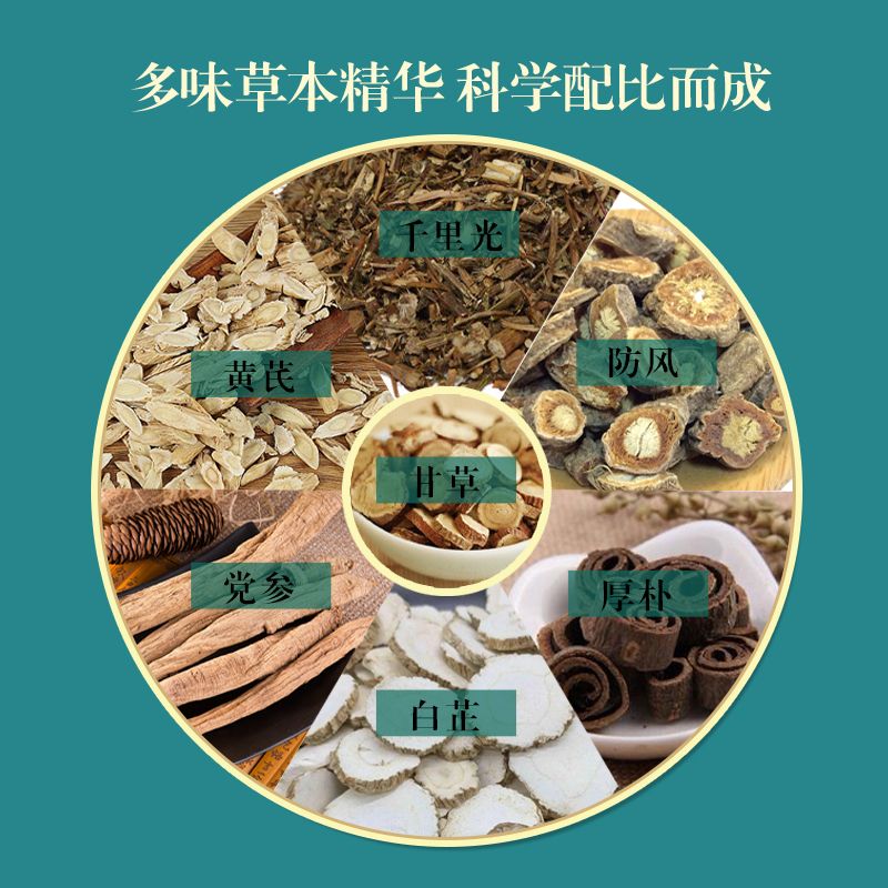 | 主要成分 | 本品是以千里光、黃芪、防風(fēng)、黨參、白芷、厚樸、甘草、薄荷為主要原料,經(jīng)特定工藝加工而成。 |