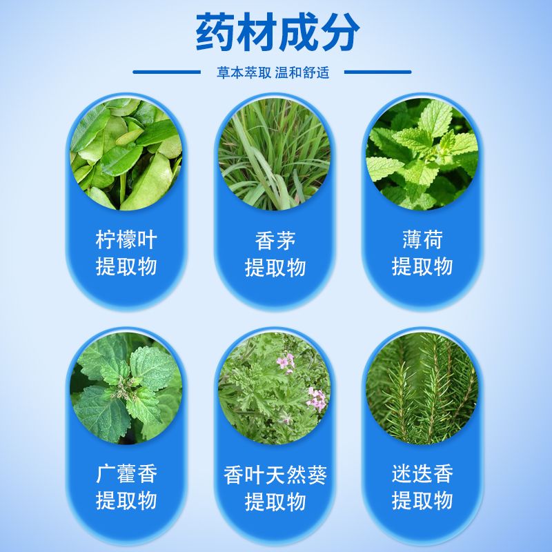 | 主要成分 | 本品是以檸檬葉提取物、香茅提取物、薄荷提取物、廣霍香提取物、香葉天然葵提取物、迷迭香提取物等為主要原料,經(jīng)特定工藝加工而成。 |
