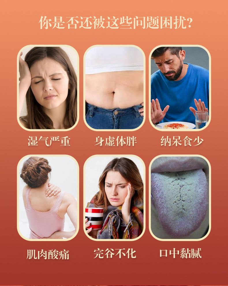 | 產(chǎn)品用途 | 適合身體濕氣過重,經(jīng)常感覺身體困重、經(jīng)常腹瀉,或身體虛胖,肌肉酸痛倦怠乏力,納呆食少,完谷不化,口中粘膩等因濕氣重引起不適的亞健康人群,促進(jìn)健康。 |