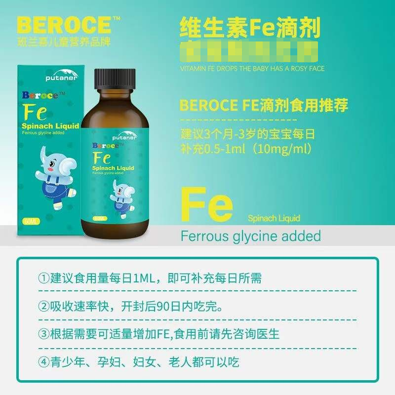 | 主要成分 | 配料:水、甘胺酸亞鐵、菠菜汁、蘋果汁、櫻桃汁、甘油、黃原膠、酪蛋白磷酸肽 含量:甘胺酸亞鐵12mg/ml |