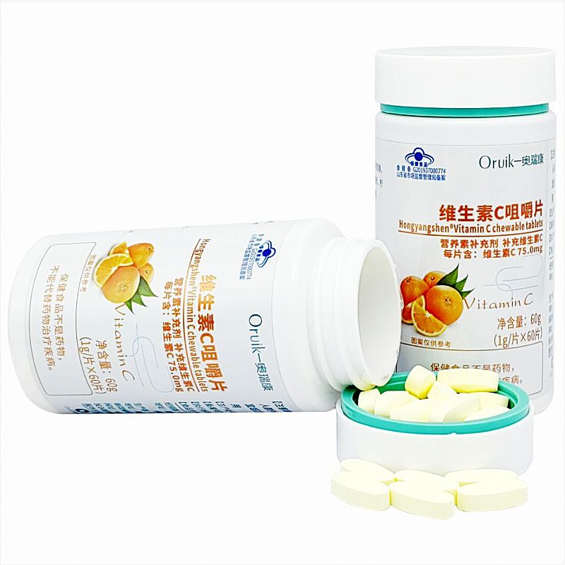 | 補(bǔ)充說明 | 維生素C咀嚼片 【原料】L-抗壞血酸 【輔料】山梨糖醇,乳糖,食用葡萄糖,硬脂酸鎂,聚維酮K30,甜菊糖苷,檸檬黃,甜橙粉末香精,鮮奶香精 【功效成分及含量】每片含:維生素C 75.0mg 【適宜人群】需要補(bǔ)充維生素C的4-17歲人群及成人、孕婦、乳母 【不適宜人群】3歲以下人群 【保健功能】補(bǔ)充維生素C 【食用量及食用方法】每日1次,每次1片,食用方法:咀嚼服用 【規(guī)格】1g/片*60片 【貯藏方法】密封,陰涼干燥處保存 【保質(zhì)期】24個(gè)月 【生產(chǎn)批號及生產(chǎn)日期】見包裝標(biāo)識 【備案號】食健備G201937000774 |
