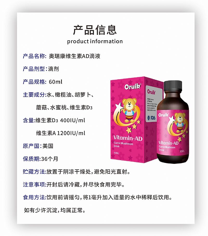 | 產(chǎn)品名稱 | 美國原裝進口維生素AD滴液 |