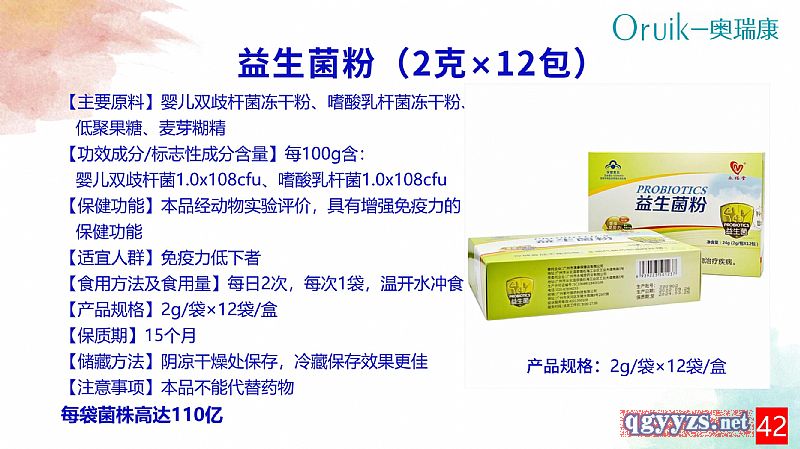| 作用機(jī)理 | 嬰兒雙歧桿菌1.0x108cfu、嗜酸乳桿菌1.0x108cfu |