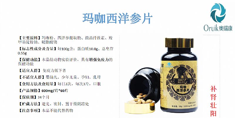 產品名稱: 奧瑞康瑪咖西洋參片