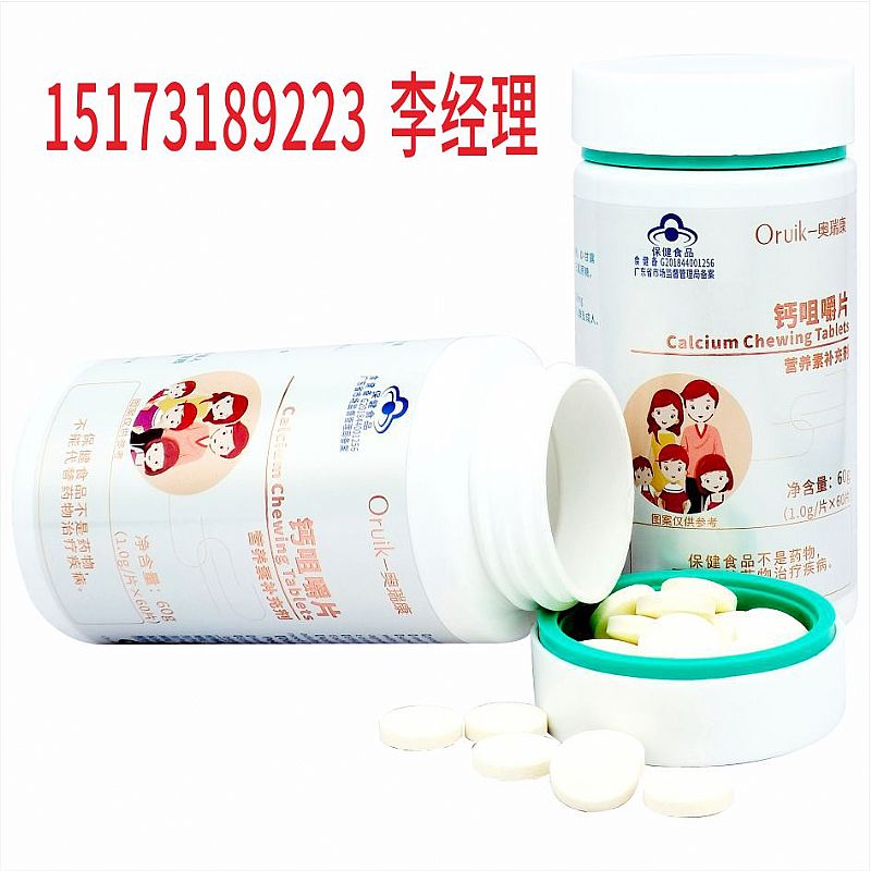 | 補充說明 | 【原料】碳酸鈣 【輔料】山梨糖醇,麥芽糊精,乳粉,D-甘露糖醇,預(yù)膠化淀粉,硬脂酸鎂,三氯蔗糖,甜橙香精,牛奶香精 【功效成分及含量】每片含:鈣 138mg 【適宜人群】需要補充鈣的4-17歲人群及成人、孕婦、乳母 【不適宜人群】3歲以下人群 【保健功能】補充鈣 【食用量及食用方法】每日1次,每次2片,食用方法:口服,咀嚼食用 【保質(zhì)期】24個月 【生產(chǎn)批號/生產(chǎn)日期/保質(zhì)期至】見噴碼 【規(guī)格】1.0g/片 【貯藏方法】密封,常溫干燥處保存 【注意事項】本品不能代替藥物。適宜人群外的人群不推薦食用本產(chǎn)品。不宜超過推薦量或與同類營養(yǎng)素同時食用 |