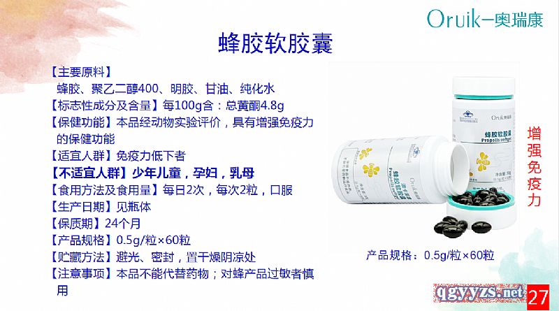 產(chǎn)品名稱: 奧瑞康蜂膠軟膠囊