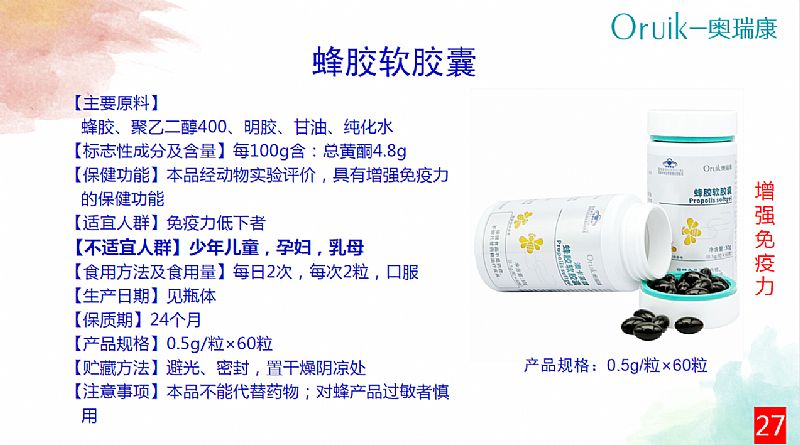 | 產(chǎn)品名稱 | 奧瑞康蜂膠軟膠囊 |