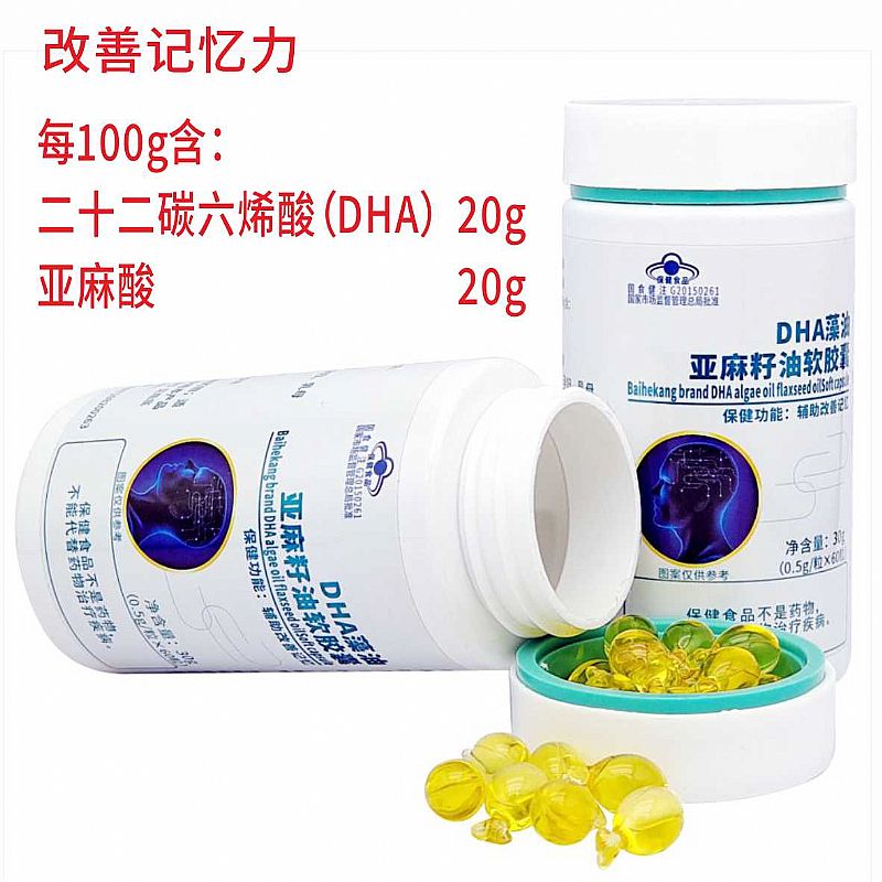 | 補(bǔ)充說(shuō)明 | 【原料】DHA藻油、亞麻籽油 【輔料】明膠、純化水、甘油 【標(biāo)志性成分及含量】每100g含:二十二碳六烯酸 15g、亞麻酸 15g 【適宜人群】需要改善記憶者 【不適宜人群】嬰幼兒、孕婦、乳母 【保健功能】輔助改善記憶 【食用量及食用方法】每日2次,每次2粒,口服 【規(guī)格】0.5g/粒 【貯藏方法】密封、置陰涼干燥處 【保質(zhì)期】24個(gè)月 【注意事項(xiàng)】本品不能代替藥物;適宜人群外的人群不推薦食用本產(chǎn)品 |