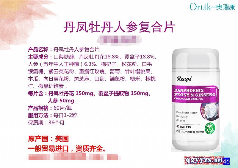 丹鳳牡丹人參復(fù)合片(美國原裝進(jìn)口)