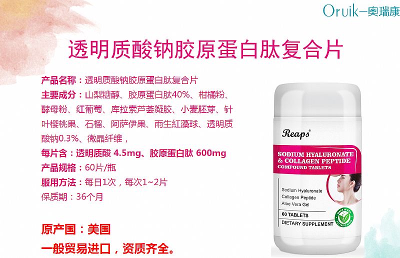 | 補(bǔ)充說明 | 產(chǎn)品名稱:丹鳳牡丹人參復(fù)合片 主要成分:山梨糖醇、丹鳳牡丹花18.8%、覆盆子18.8%、人參(五年生人工種植)6.3%、枸杞子、松花粉、白毛銀露梅、紫云英花粉、重瓣紅玫瑰、葡萄、針葉櫻桃果、木瓜、向日葵花粉、黑芝麻、山藥、鮭魚粉、糙米、核桃仁、微晶纖維素, 每片含:丹鳳牡丹花 150mg、覆盆子提取物 150mg、 人參 50mg 產(chǎn)品規(guī)格:60片/瓶 服用方法:每日1-2粒 保質(zhì)期:36個(gè)月 原產(chǎn)國:美國 一般貿(mào)易進(jìn)口,資質(zhì)齊全。 |