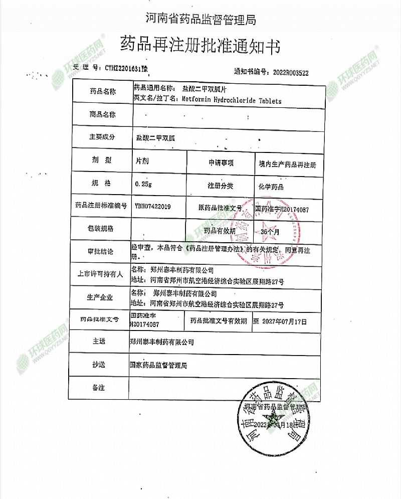 | 英文名稱 | Metformin Hydorchloride Tablets |
