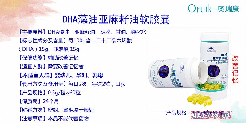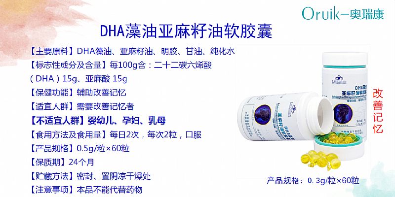 | 作用機理 | 【標志性成分及含量】每100g含:二十二碳六烯酸(DHA)15g、亞麻酸 15g |