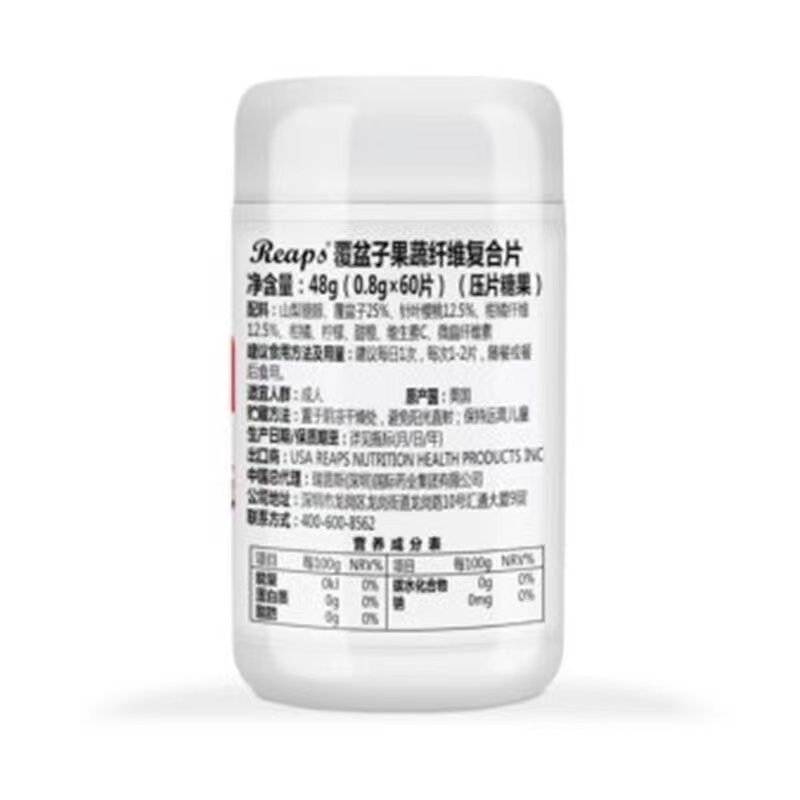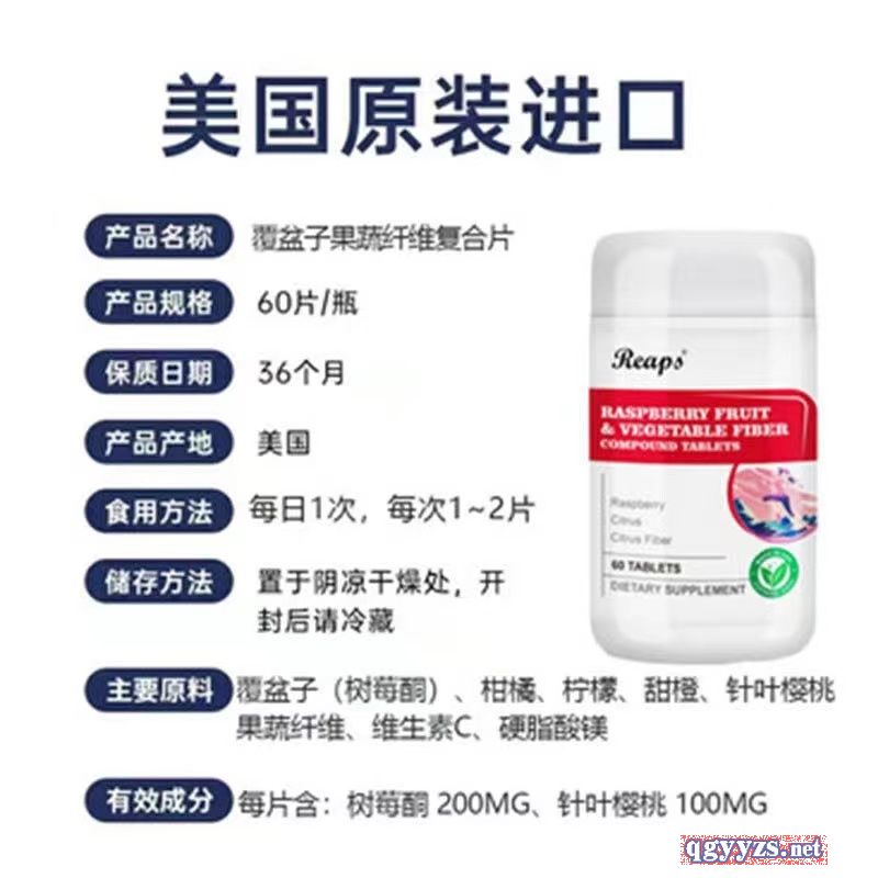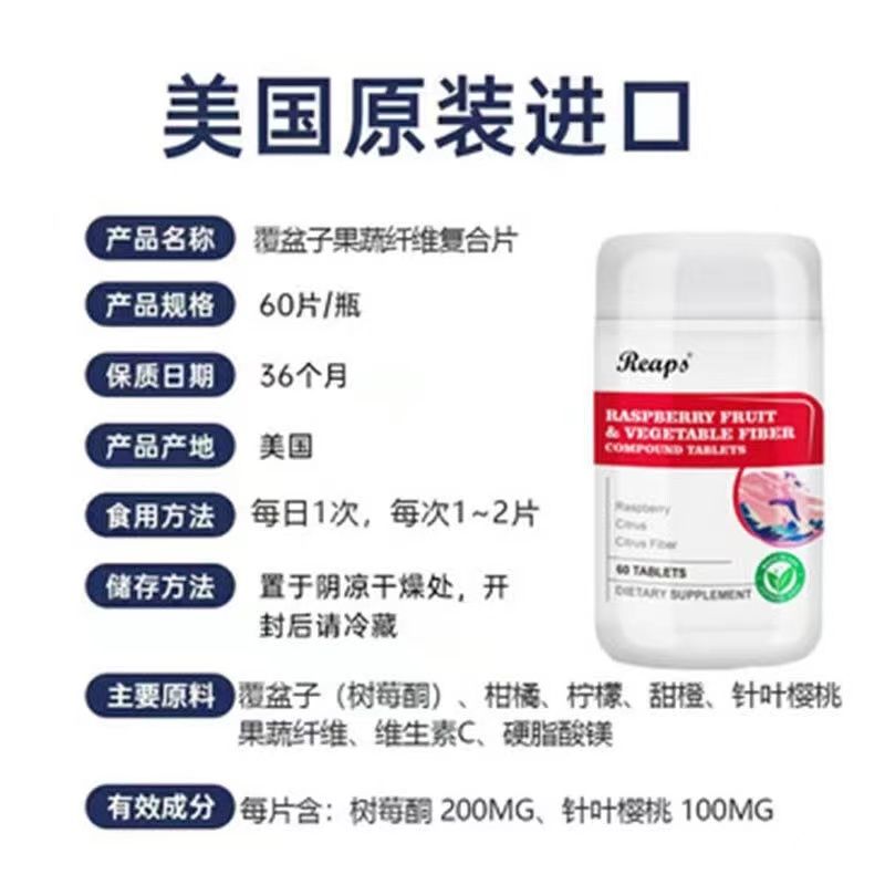 | 補(bǔ)充說明 | 產(chǎn)品名稱:覆盆子果蔬纖維復(fù)合片 主要成分:山梨糖醇、覆盆子25%、針葉櫻桃12.5%、柑橘纖維12.5%、柑橘、檸檬、甜橙、維生素C、微晶纖維素, 每片含:覆盆子200mg、針葉櫻桃100mg、柑橘纖維100mg 產(chǎn)品規(guī)格:60片/瓶 服用方法:每日1次,每次1~2片 保質(zhì)期:36個(gè)月 原產(chǎn)國:美國 一般貿(mào)易進(jìn)口,資質(zhì)齊全。 |