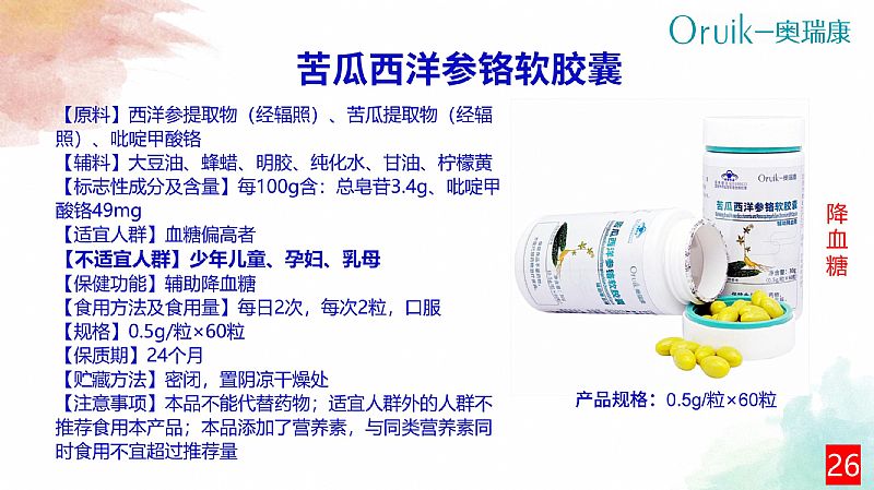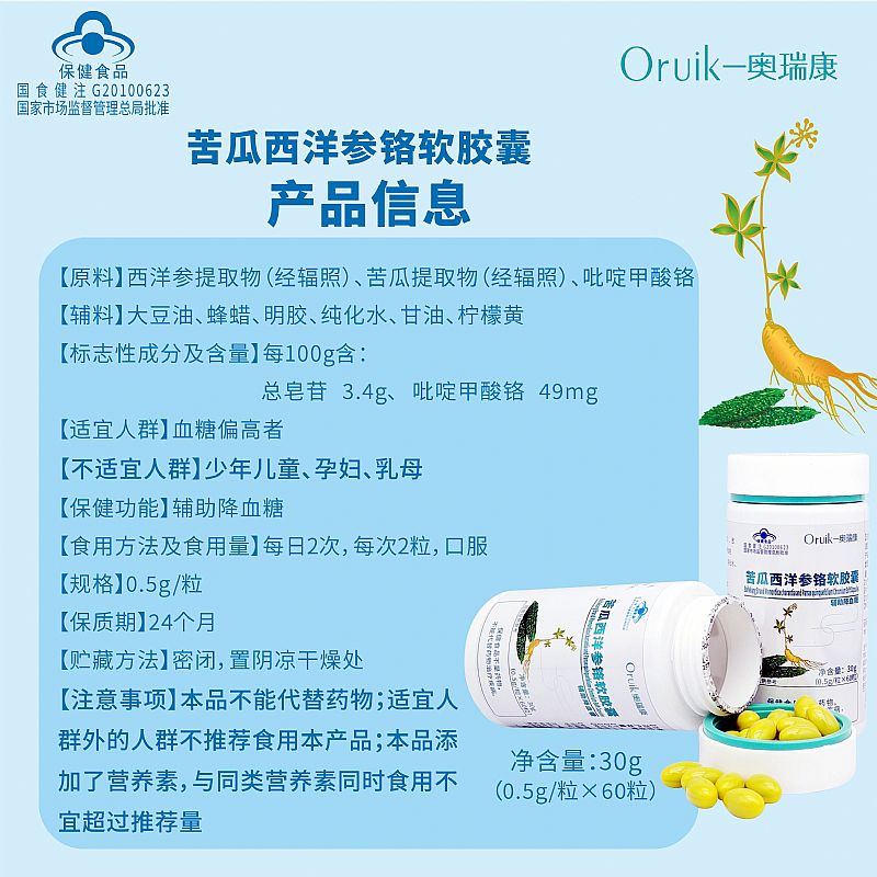 | 產(chǎn)品名稱 | 苦瓜西洋參鉻軟膠囊 |
