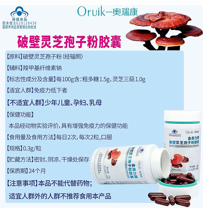 | 補(bǔ)充說明 | 【原料】破壁靈芝孢子粉(經(jīng)輻照) 【輔料】羧甲基纖維素鈉 【標(biāo)志性成分及含量】每100g含:粗多糖 1.5g、靈芝三萜 1.0g 【適宜人群】免疫力低下者 【不適宜人群】少年兒童、孕婦、乳母 【保健功能】本品經(jīng)動物實(shí)驗(yàn)評價(jià),具有增強(qiáng)免疫力的保健功能 【食用量及食用方法】每日2次,每次2粒,口服 【規(guī)格】0.3g/粒 【貯藏方法】密封、陰涼、干燥處保存 【保質(zhì)期】24個(gè)月 【注意事項(xiàng)】本品不能代替藥物;適宜人群外的人群不推薦食用本產(chǎn)品 |