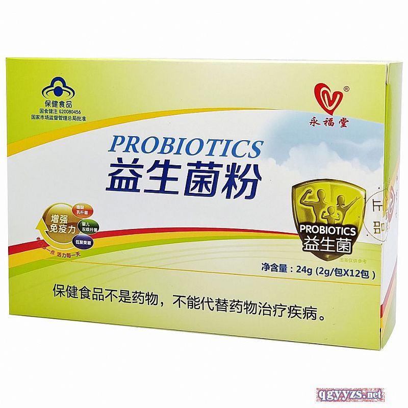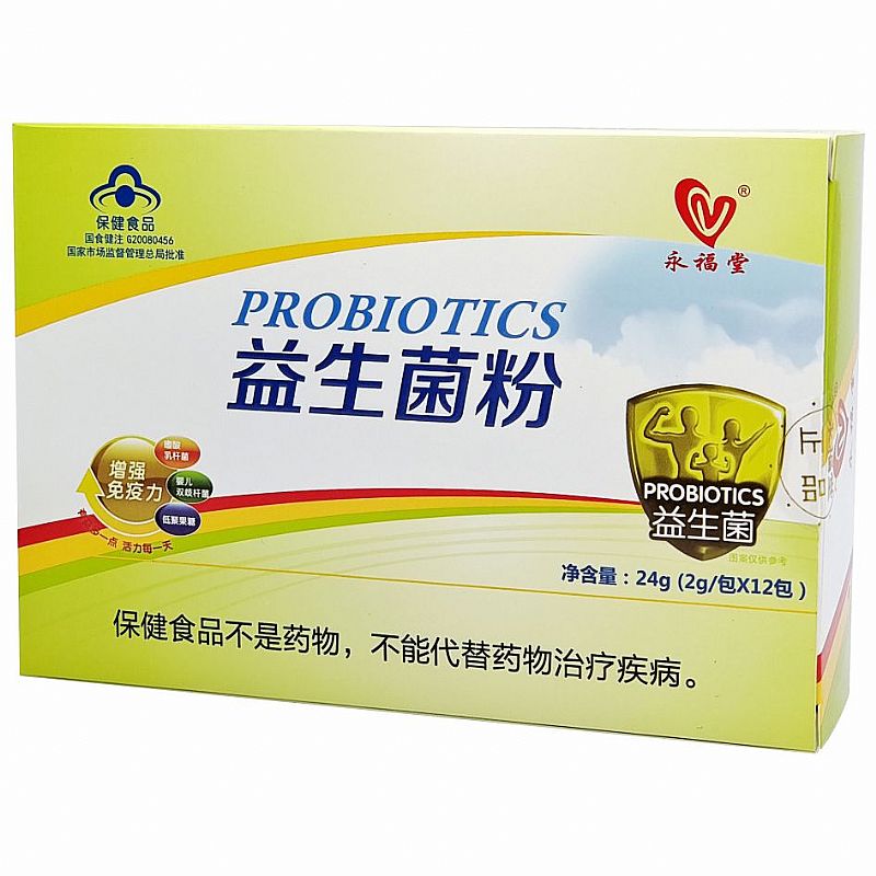 | 補(bǔ)充說明 | 原料:嬰兒雙歧桿菌凍干粉、嗜酸乳桿菌凍干粉 輔料:低聚果糖、麥芽糊精 標(biāo)志性成分含量:每100g含:嬰兒雙歧桿菌1.0x108 cfu、嗜酸乳桿菌1.0x108 cfu 保健功能:本品經(jīng)動(dòng)物實(shí)驗(yàn)評價(jià),具有增強(qiáng)免疫力的保健功能 適宜人群:免疫力低下者 不適宜人群:嬰幼兒、孕婦、乳母 食用量及食用方法:每日2次,每次1包,溫開水沖食 規(guī)格:2g/包×12包 保質(zhì)期:18個(gè)月 貯藏方法:陰涼干燥處保存,冷藏保存效果更佳 注意事項(xiàng):本品不能代替藥物,適宜人群外的人群不推薦食用本產(chǎn)品 |