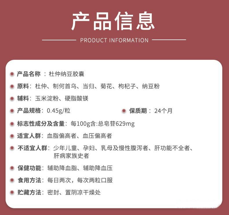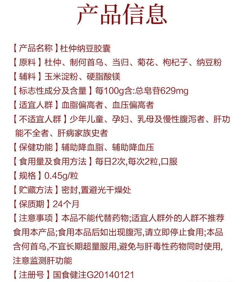 | 產(chǎn)品名稱 | 杜仲納豆膠囊 |