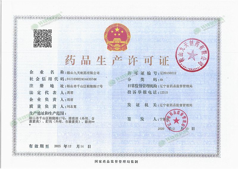 生產(chǎn)企業(yè): 鞍山九天制藥有限公司