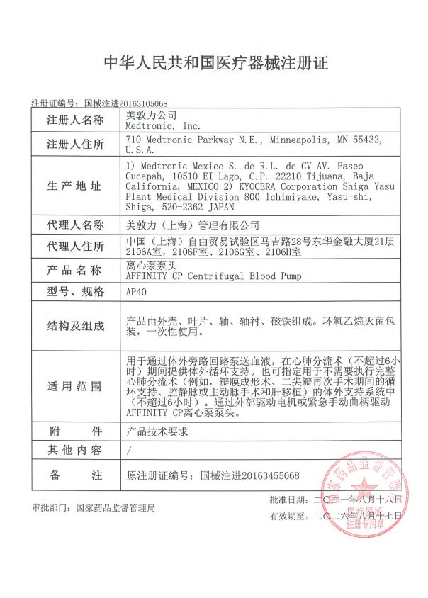 | 產(chǎn)品用途 | 用于通過體外旁路回路泵送血液,在心肺分流術(shù)(不超過6小時)期間提供體外循環(huán)支持。也可指定用于不需要執(zhí)行完整心肺分流術(shù)(例如,瓣膜成形術(shù)、尖瓣再次手術(shù)期間的循環(huán)支持、腔靜脈或主動脈手術(shù)和肝移植)的體外支持系統(tǒng)中(不超過6小時)。通過外部驅(qū)動電機(jī)或緊急手動曲柄驅(qū)動AFFINITYCP離心泵泵頭。 |