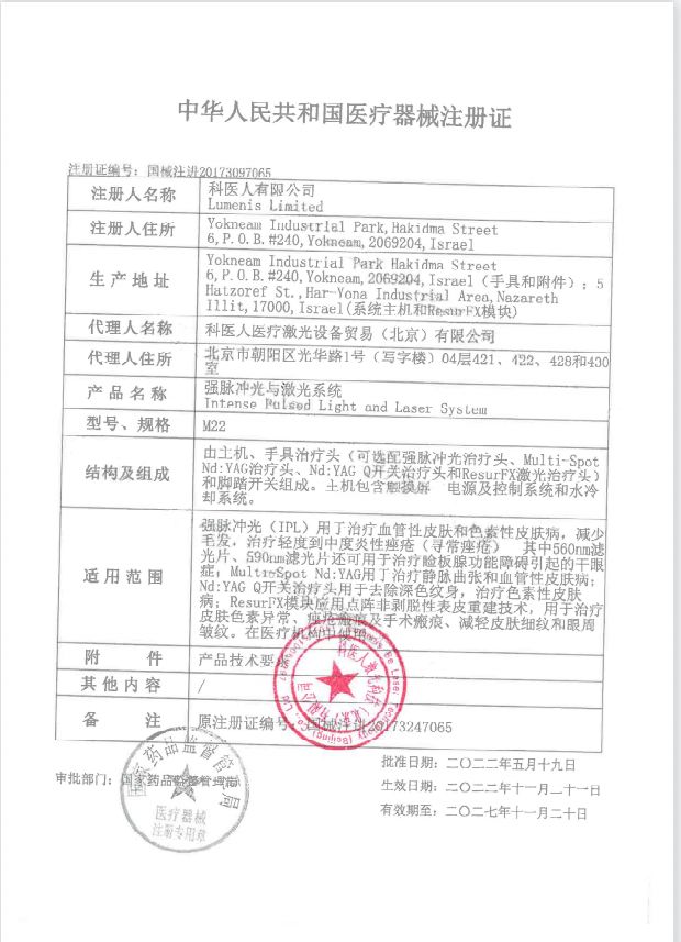 | 補(bǔ)充說明 | M22 Universal IPL現(xiàn)在與AOPT相結(jié)合,使高級用戶能夠完全控制,從而可以輕松地為每個患者和每種情況單獨定制設(shè)置。充分利用每一次脈沖,輕松為您的患者提供一致、可靠的臨床結(jié)果! 憑借黃金線設(shè)計,Lumenis自豪地向美容醫(yī)療市場推出一款優(yōu)質(zhì)的M22版本,提供**、安心、有效的光和激光治療。 |