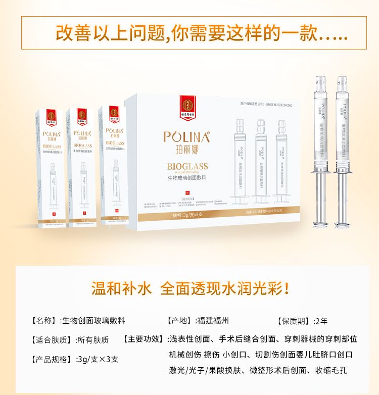 | 補(bǔ)充說明 | [注意事項(xiàng)和提示性說明] 1.一旦出現(xiàn)過敏反應(yīng),應(yīng)停用本品。 2.用后一周癥狀無緩解,或出現(xiàn)局部紅腫、疼痛或其他不適癥狀時(shí)應(yīng)去醫(yī)院就診。 3.請將本品放在兒童不能接觸的地方。 4.使用前請仔細(xì)閱讀說明書,請?jiān)诋a(chǎn)品有效期內(nèi)使用。 5.如正在使用其他藥品,使用本品前請咨詢醫(yī)師或藥師。 6.使用后的產(chǎn)品按照醫(yī)院規(guī)定或環(huán)保要求處理。 7.本品適用于非慢性創(chuàng)面(如淺表性創(chuàng)面、手術(shù)后縫合創(chuàng)面、機(jī)械創(chuàng)傷、小創(chuàng)口、擦傷、切割傷創(chuàng)面、穿刺器械的穿刺部位、|度或淺I度的燒燙傷創(chuàng)面、嬰兒肚臍口創(chuàng)口、激光/光子/果酸換膚/微整形術(shù)后創(chuàng)面)的護(hù)理,為創(chuàng)面愈合提供微環(huán)境,促進(jìn)創(chuàng)面愈合。 [禁忌癥]對生物玻璃過敏者禁用。 [保存條件]常溫儲(chǔ)存。 [生產(chǎn)批號]、[生產(chǎn)日期]詳見產(chǎn)品包裝標(biāo)識(shí)。 [有效期]三年 [醫(yī)療器械注冊證/技術(shù)要求編號]閩械注準(zhǔn)20232140052 [醫(yī)療器械生產(chǎn)許可證編號]閩藥監(jiān)械生產(chǎn)許20230814號 |
