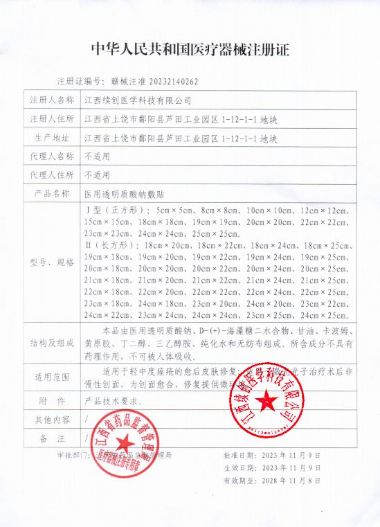 | 產(chǎn)品用途 | 適用于輕中度痤瘡的愈后皮膚修復(fù),適用于激光光子治療術(shù)后非慢性創(chuàng)面,為創(chuàng)面愈合、修復(fù)提供微環(huán)境。 |