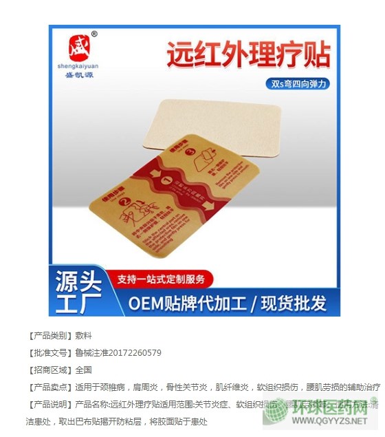 | 產(chǎn)品賣點 | 二類醫(yī)療器械,藥店可刷醫(yī)保。緩解疼痛,舒筋活血,促進血液循環(huán),效果明顯。 |
