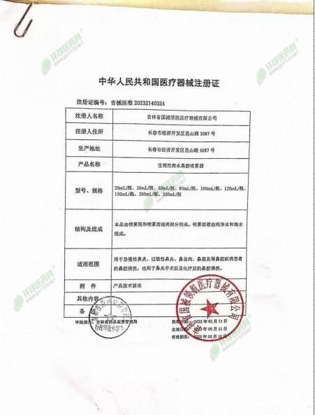 | 產(chǎn)品名稱 | 生理性海水鼻腔噴霧器 |