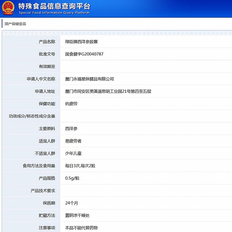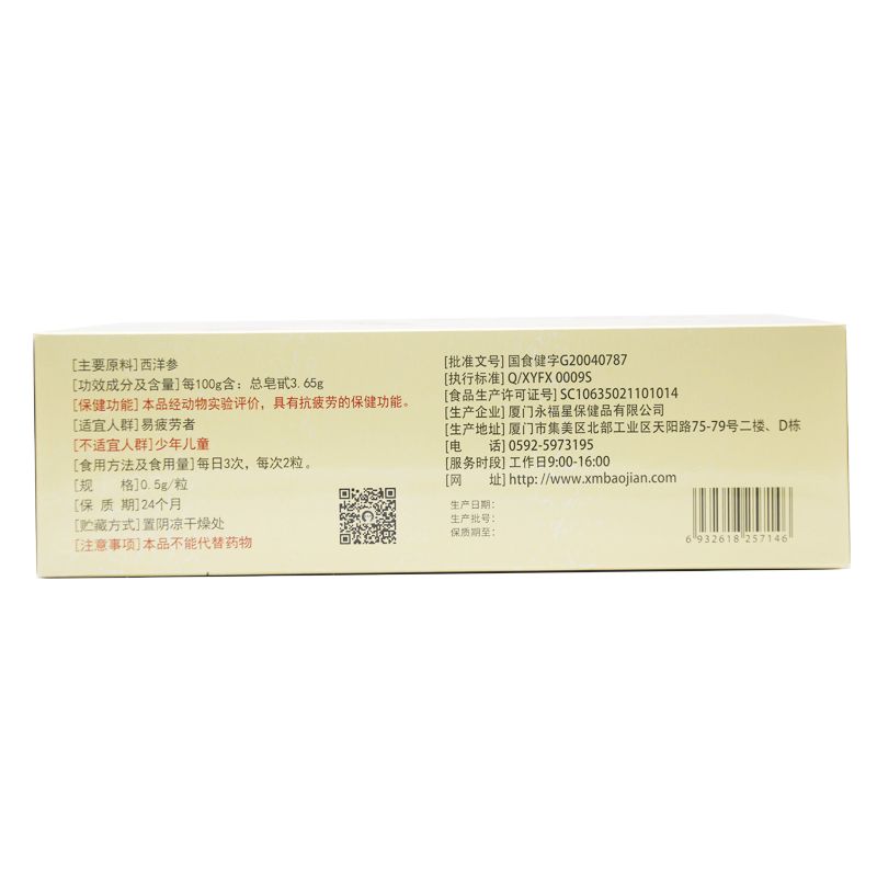 生產(chǎn)企業(yè): 廈門永福星保健品有限公司