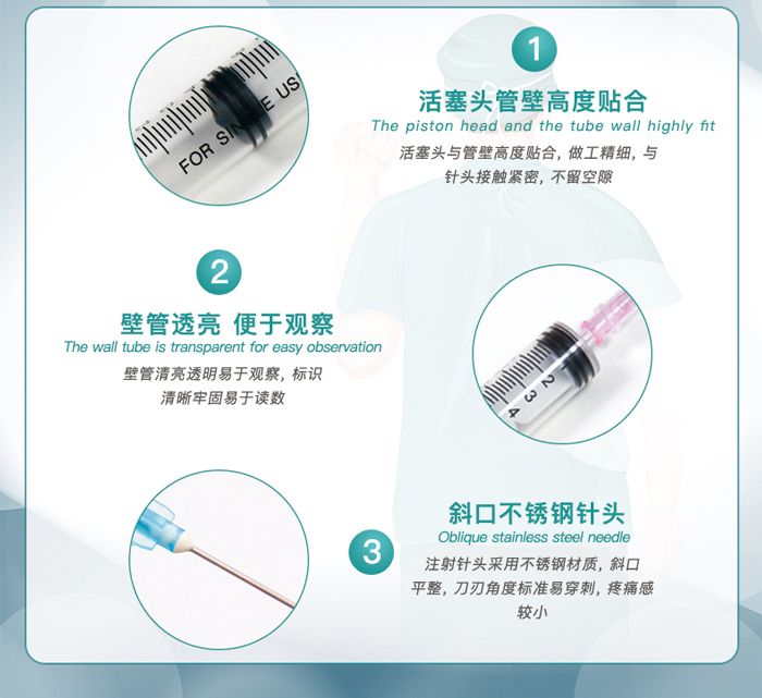 | 使用方法 | 1撕開單包裝袋,取出注射器。 2去掉注射針保護套,拉動芯桿作來回滑動,擰緊注射針,然后抽入藥液。 3注射針向上,緩慢上推芯桿排除空氣。 4進行皮下或肌肉注射或進行抽血。 |