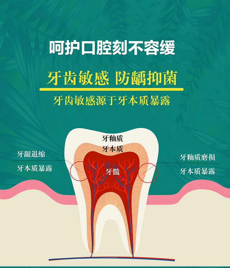 | 作用機理 | 一、脫敏牙膏是作用于神經(jīng)細(xì)胞的外部,通過去極化抑制神經(jīng)疼痛信號傳導(dǎo),而減輕外部刺激帶來的痛覺,這類以可溶性鉀鹽為主,如硝酸鉀和氯化鉀。 二、抗牙本質(zhì)過敏的牙膏是通過阻塞暴露的牙本質(zhì)小管口,阻隔外界刺激而減輕牙本質(zhì)敏感,這類常見的有氟化亞錫或其他的亞錫鹽類、乙酸鍶、磷硅酸鈣鈉和精氨酸等。 三、在刷牙時能在暴露的牙本質(zhì)表面形成沉淀物,封閉開放的牙本質(zhì)小管,阻隔外界冷熱酸甜的刺激,從而減輕或預(yù)防敏感。同時可以形成保護層,有很好的耐酸性,可以避免日常酸性飲料導(dǎo)致的牙本質(zhì)敏感復(fù)發(fā)。 |