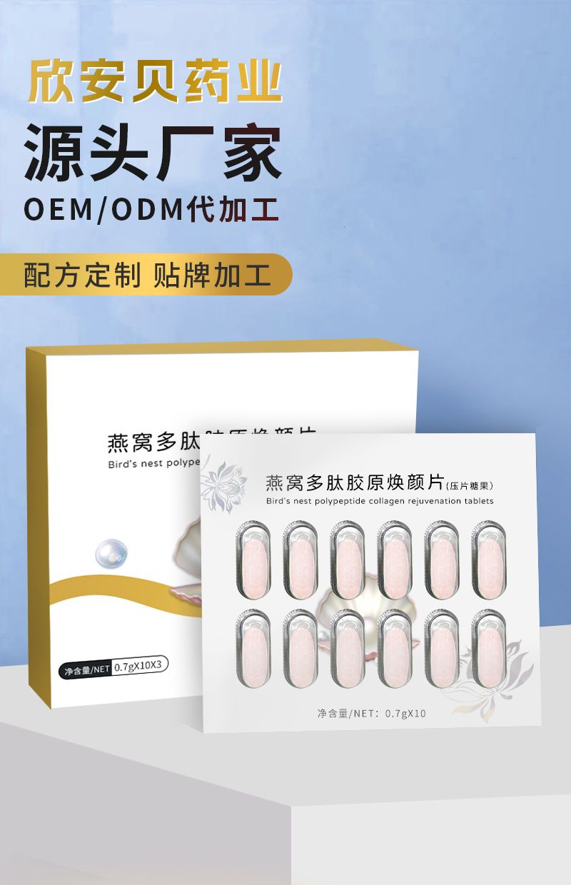 產(chǎn)品名稱: 代加工粉劑,片劑、OEM、燕窩多肽膠原蛋白片