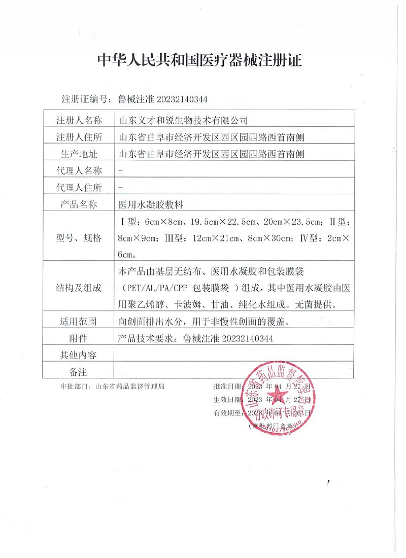 | 補(bǔ)充說明 | 本產(chǎn)品由基層無紡布、醫(yī)用水凝膠和包裝膜袋(PET/AL/PA/CPP包裝膜袋)組成,其中醫(yī)用水凝膠由醫(yī)用聚乙烯醇、卡波姆、甘油、純化水組成,無菌提供。 外用:1.使用本品前,請先清潔和消毒傷口; 2.清洗雙手,確認(rèn)包裝無破損后拆開內(nèi)包裝袋,取出產(chǎn)品; 3.撕下薄膜,按傷口輪廓將產(chǎn)品貼上,然后輕輕拍打,使其貼緊濕敷15-30分鐘/次,每天1-3次,或遵醫(yī)囑。 |