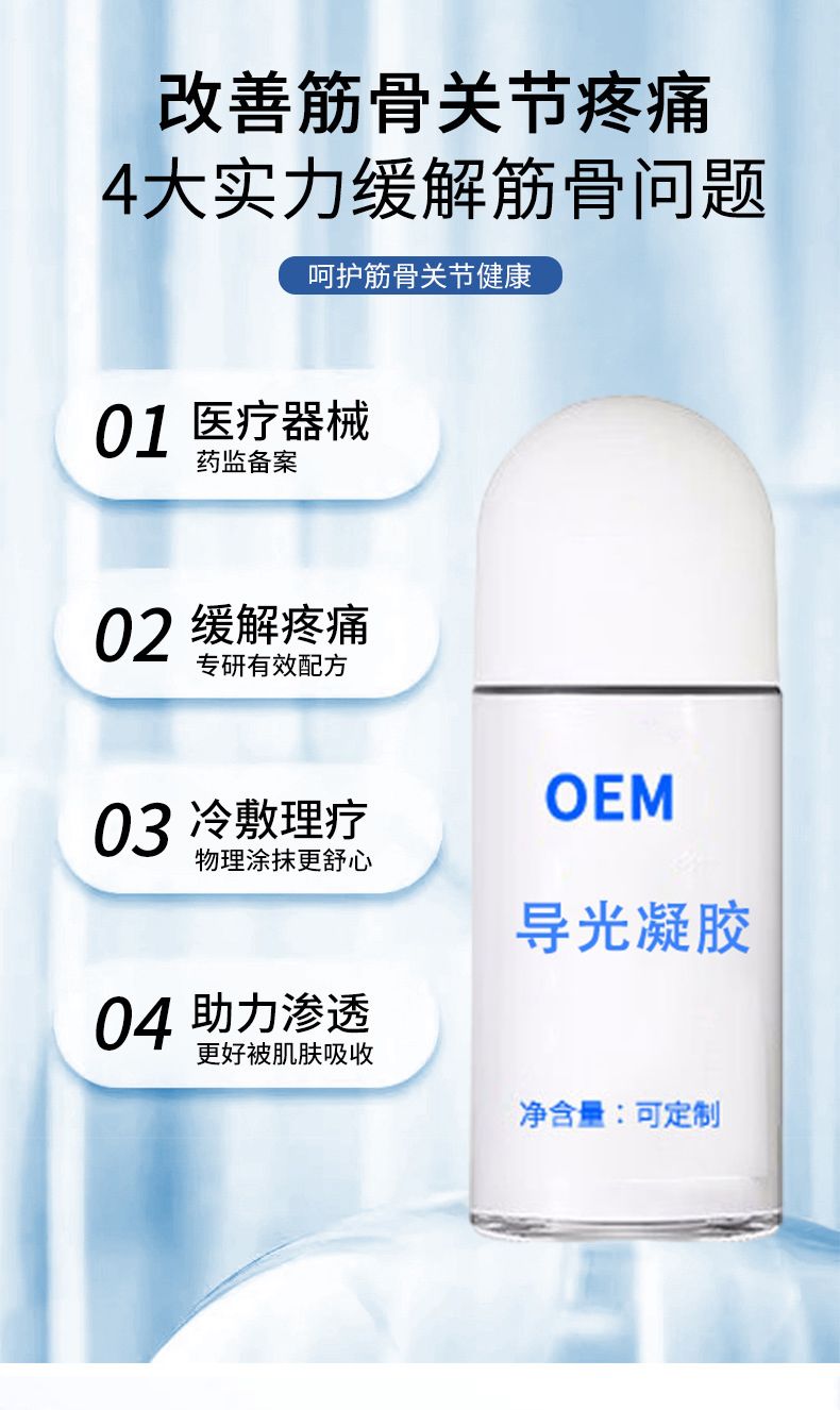 導(dǎo)光凝膠代加工頸肩腰腿痛艾灸液消痛型冷敷凝膠