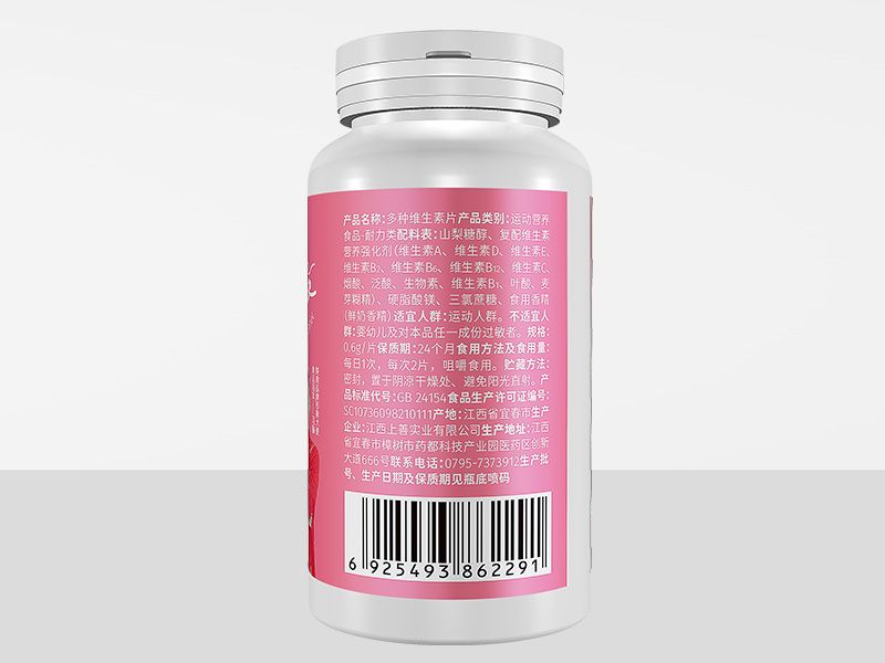 | 主要成分 | 山梨糖醇、復(fù)配維生素營養(yǎng)強(qiáng)化劑(維生素A、維生素D、維生素E、維生素B2、維生素B6、維生素B12、維生素C、煙酸、泛酸、生物素、維生素B1、葉酸、麥芽糊精)、硬脂酸鎂、三氯蔗糖、食用香精(鮮奶香精) |