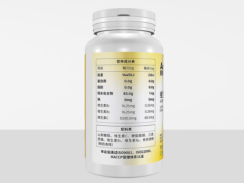 | 主要成分 | 山梨糖醇、維生素C、硬脂酸鎂、三氯蔗糖、維生素B1、維生素B2、食用香精(鮮奶香精) |