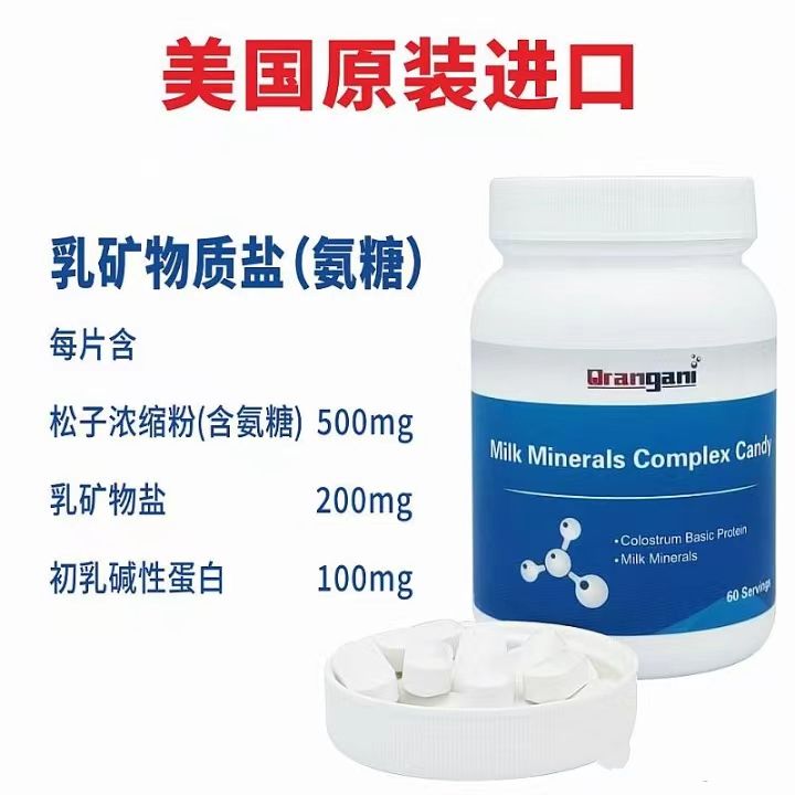 | 作用機(jī)理 | 每片含松子濃縮粉(含氨糖)500mg,乳礦物鹽200mg,初乳堿性蛋白100mg |