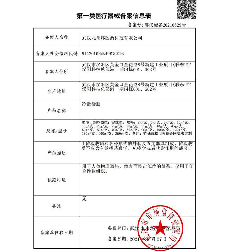 | 產(chǎn)品用途 | 用于人體物理退熱、體表面特定部位的降溫。僅用于閉合性軟組織。 |