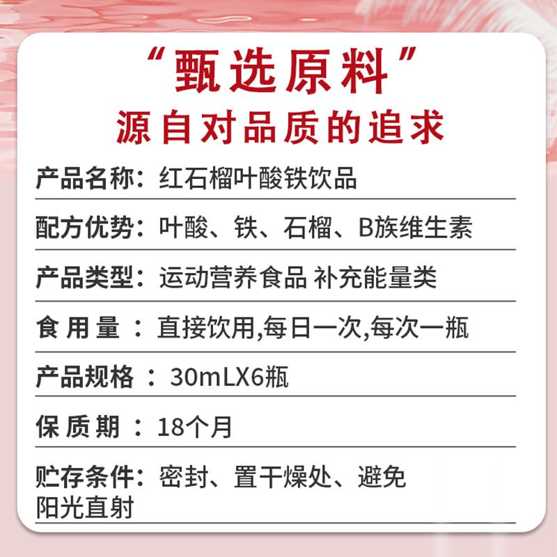 | 產(chǎn)品名稱 | 紅石榴葉酸鐵飲品 |