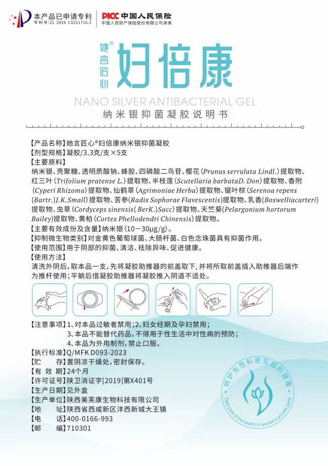 產(chǎn)品名稱: 她言匠心®;婦倍康納米銀抑菌凝膠婦科凝膠(專利)