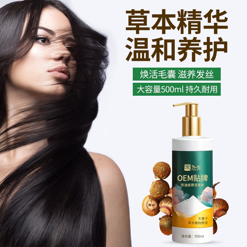 廠家生產(chǎn)無(wú)患子草本原漿控油去屑洗發(fā)水oem貼牌