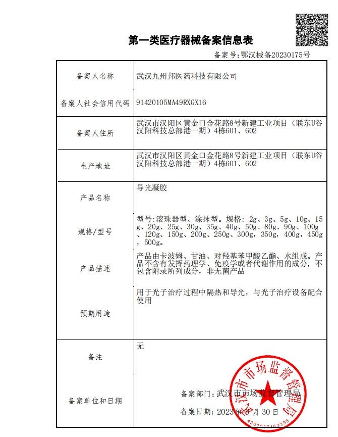 批準(zhǔn)文號: 鄂漢械備20230175號 【驗(yàn)證真?zhèn)?/a>】