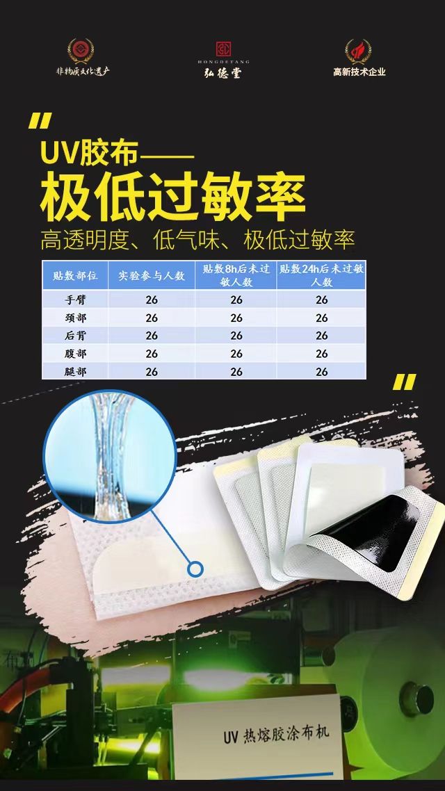 | 產品賣點 | UV膠布防水、防汗、零過敏、不含有機溶劑、貼敷性,持粘性都比較好、(UV膠布適用于、**膏劑貼、醫(yī)用膠布) |