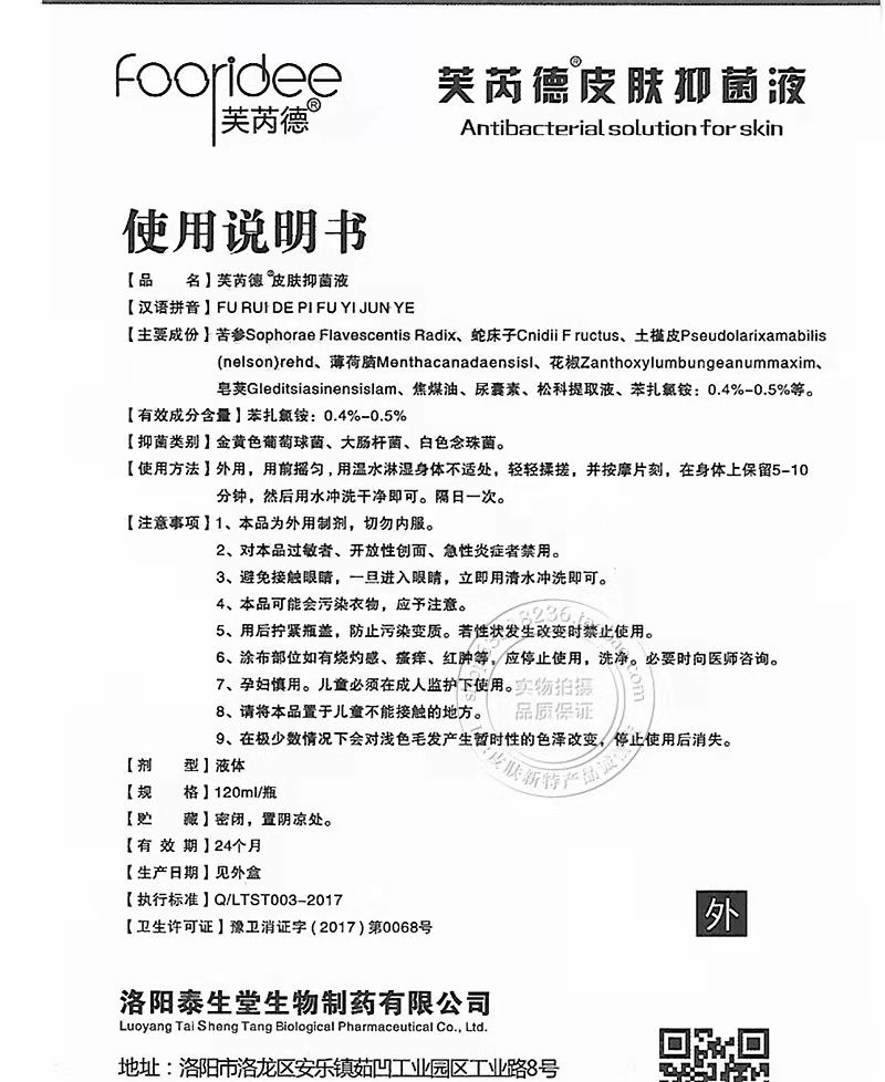 產(chǎn)品名稱: 芙芮德皮膚抑菌液