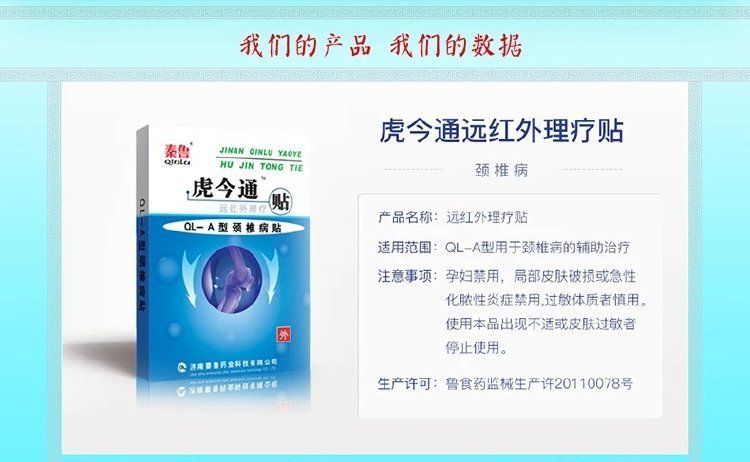 | 產(chǎn)品用途 | 虎今通遠(yuǎn)紅外理療貼主要針對頸椎病,肩周炎,腰間盤突出,骨質(zhì)增生,軟骨織損傷,風(fēng)濕性關(guān)節(jié)具有很好的輔助治療的作用。 |