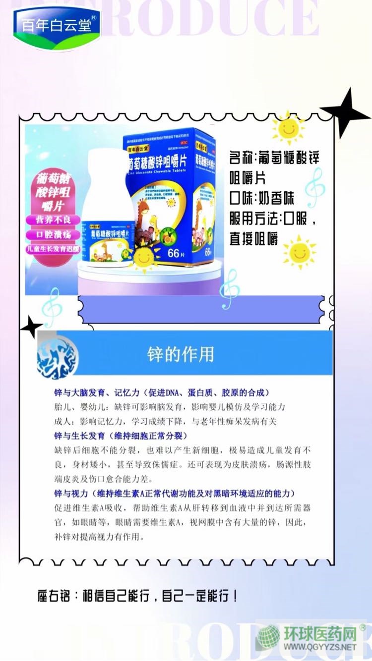 | 補(bǔ)充說明 | 葡萄糖酸鋅咀嚼片的主要成分為葡萄糖酸鋅,鋅為體內(nèi)許多酶的重要組成成份,具有促進(jìn)生長(zhǎng)發(fā)育、改善味覺等作用。缺乏時(shí),生長(zhǎng)停滯、生殖無(wú)能、傷口不易愈合、機(jī)體衰弱,還可發(fā)生結(jié)膜炎、口腔炎、舌炎、食欲缺乏、慢性腹瀉、味覺喪失以及神經(jīng)癥狀等。鋅對(duì)兒童生長(zhǎng)發(fā)育尤為重要。 葡萄糖酸鋅片可以用來治療哪些疾病? 葡萄糖酸鋅片用于治療缺鋅引起的營(yíng)養(yǎng)不良、厭食癥、異食癖、口腔潰瘍、痤瘡、兒童生長(zhǎng)發(fā)育遲緩! |