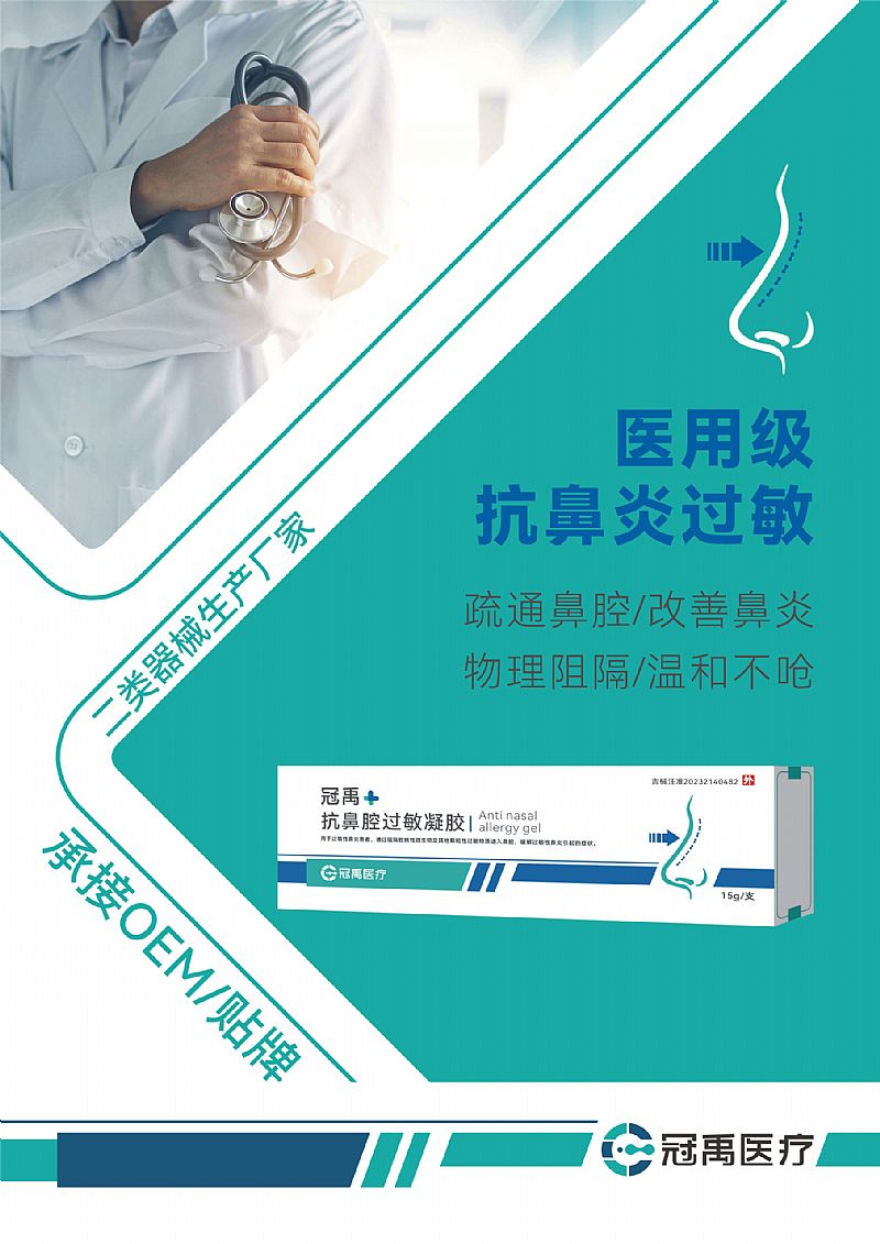 | 補充說明 | 【產(chǎn)品名稱】抗鼻腔過敏凝膠 【型號、規(guī)格】10g/支、12g/支、15g/支、18g/支、20g/支、30g/支、40g/支、50g/支。 【結構及組成】本品由凝膠和給凝膠管組成,凝膠是由純化水、甘油、卡波姆940、三乙醇胺和聚山梨酯-80組成,給凝膠管由聚乙烯材料制成。 【產(chǎn)品性能】外觀:顏色應為無色透明至淡黃色,色澤均勻。給凝膠管:給凝膠管表面應光滑,無毛刺,外形端正,無明顯變形或殘缺。pH值:應為4.0~7.0。其他內容詳見產(chǎn)品技術要求。 【適用范圍】用于過敏性鼻炎患者,通過阻隔致病性微生物及其他顆粒性過敏物質進入鼻腔,緩解過敏性鼻炎引起的癥狀。 【使用方法】使用前,請清潔鼻腔,去除鼻腔內附著物。用潔凈棉簽蘸取適量本品,均勻涂抹于鼻腔內。每日1-2次,病情嚴重患者每日3次或遵醫(yī)囑。 【禁 忌 癥】對本品過敏者禁用。 【注意事項】1.本品外用,禁止口服;2.使用過程中如有出現(xiàn)皮膚刺激、皮疹、皸裂等癥狀,請停止使用;3.使用過程中如有刺激現(xiàn)象,請以清水沖洗,并停止使用。4.請置于兒童不宜接觸到的地方;5.孕婦應在醫(yī)師指導下使用。 【特殊儲存、運輸條件、方法】密封、置陰涼干燥處保存;常溫運輸。 【產(chǎn)品批號/生產(chǎn)日期/失效日期】見包裝盒 【使用期限】三年 |