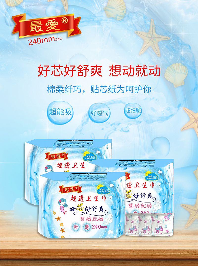 | 產(chǎn)品名稱(chēng) | 最?lèi)?ài)純棉表層超薄衛(wèi)生巾(240mm日用) |