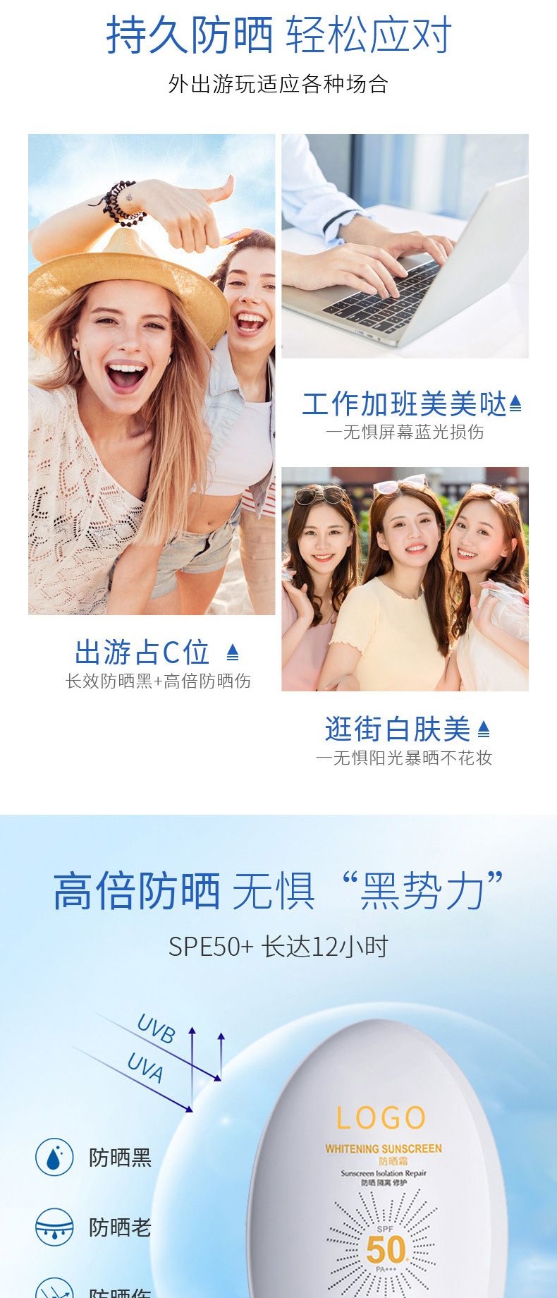 定制防曬霜防紫外線防水防汗清爽不油膩隔離三合一
